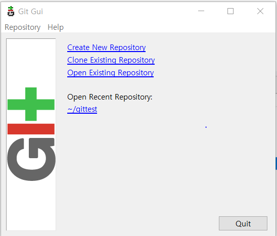 git gui에서 open existing repository 를 누르고 작업 공간으로 지정해준 디렉토리(파일)를 선택 해준다.