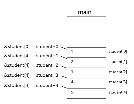 즉 student 배열의 시작 주소인 &student[0] 과 student는 같은 표현이고