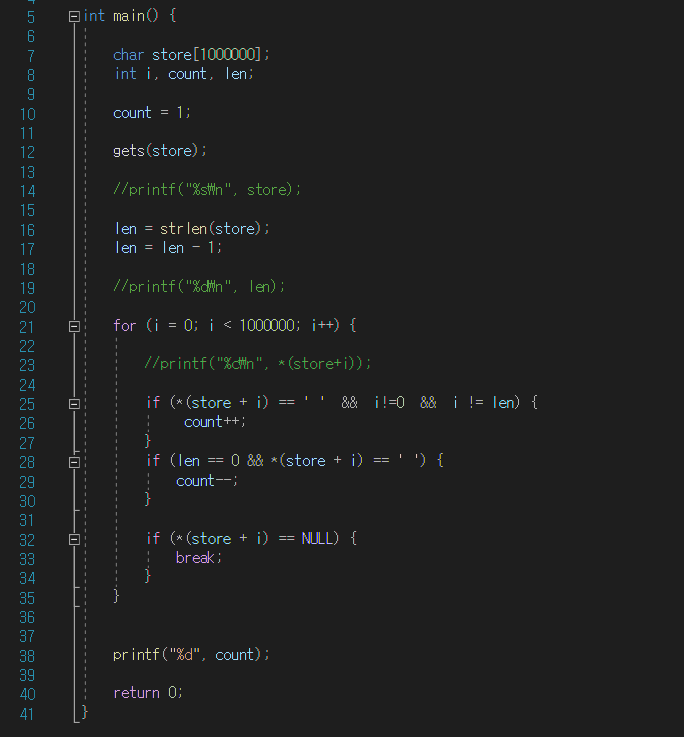 띄어쓰기로 단어의 개수를 구하는 문제였다.
