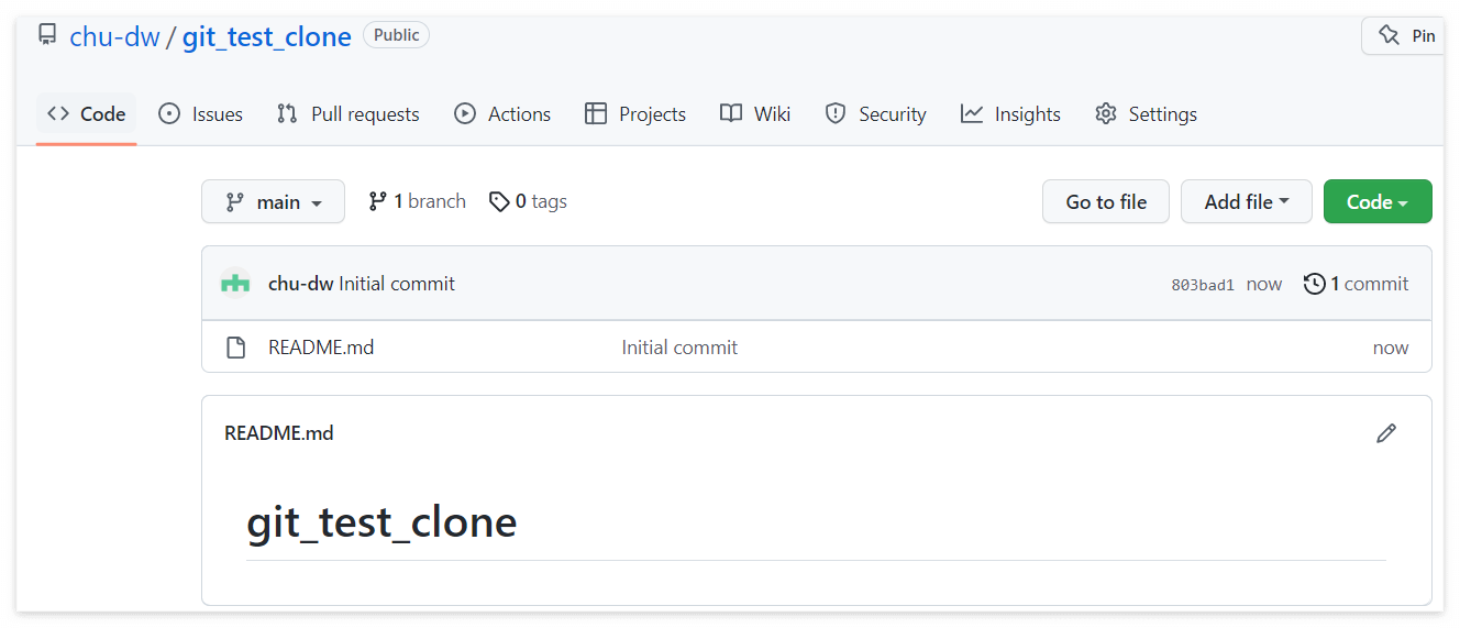 원격저장소에 이미 파일을 만들어 주었기에 복제하는 clone 명령어를 사용하여 동기화한다.