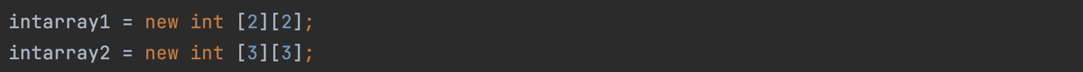비정형 배열은 위에서 설명한 각 행을 가리키는 레퍼런스 변수에서 원하는 크기만큼 배열을 생성해 주면 된다.