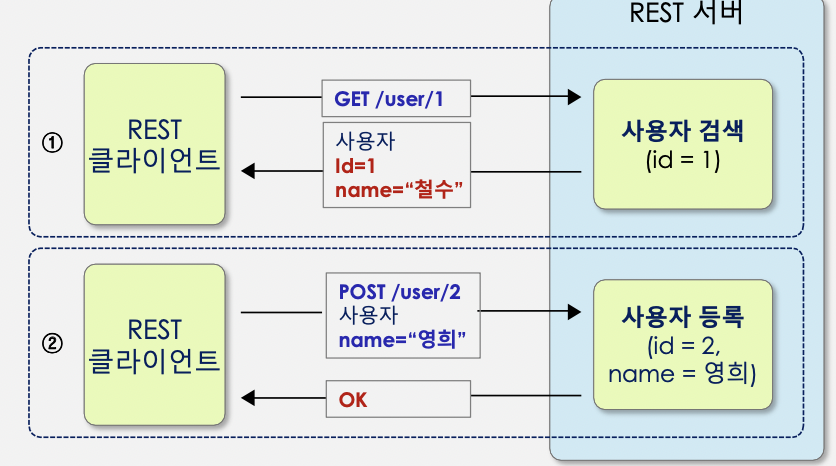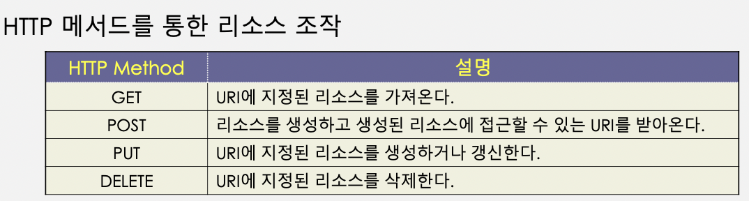- http 메서드에 대한 처리 결과를 서버는 json 또는 xml 등의 형식으로 전송